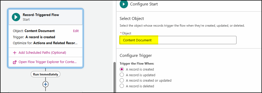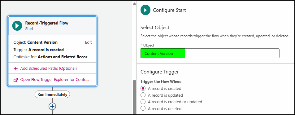 The final flow feature highlighted is the ability to create Flow Triggers based on files. This gives your admins and developers the ability to create automations that can alert the record owner when a new file (or a new version of a file) has been attached to a record. This is ideal for the use case where you have an application process, and you are awaiting a customer to upload a file before you can progress. Now, a record-triggered flow can be created to alert you via email/Slack or an alert message, immediately after the file is uploaded.