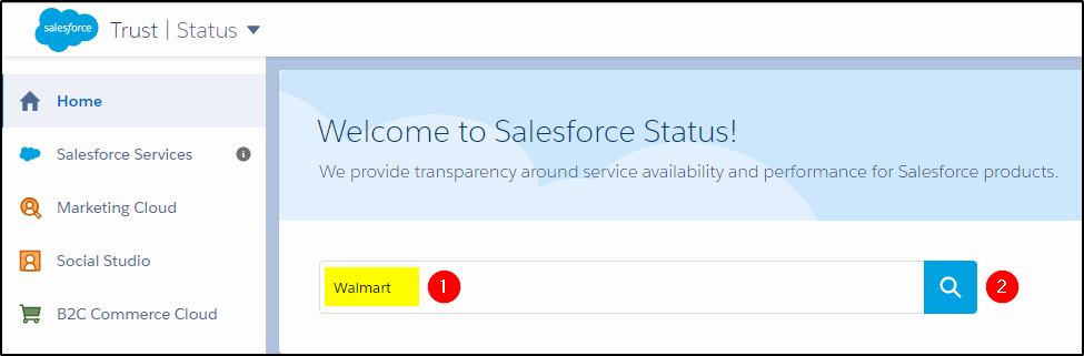 - Navigate to: https://status.salesforce.com/