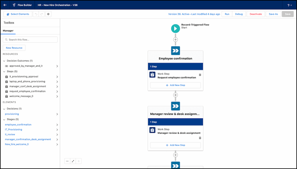 Flow Orchestrator is a new product designed to help Admins create sophisticated multi-user, multi-step automated business processes, with clicks, not code. You can link different flows, and approval processes together, defining whether steps need to be completed sequentially, or together.