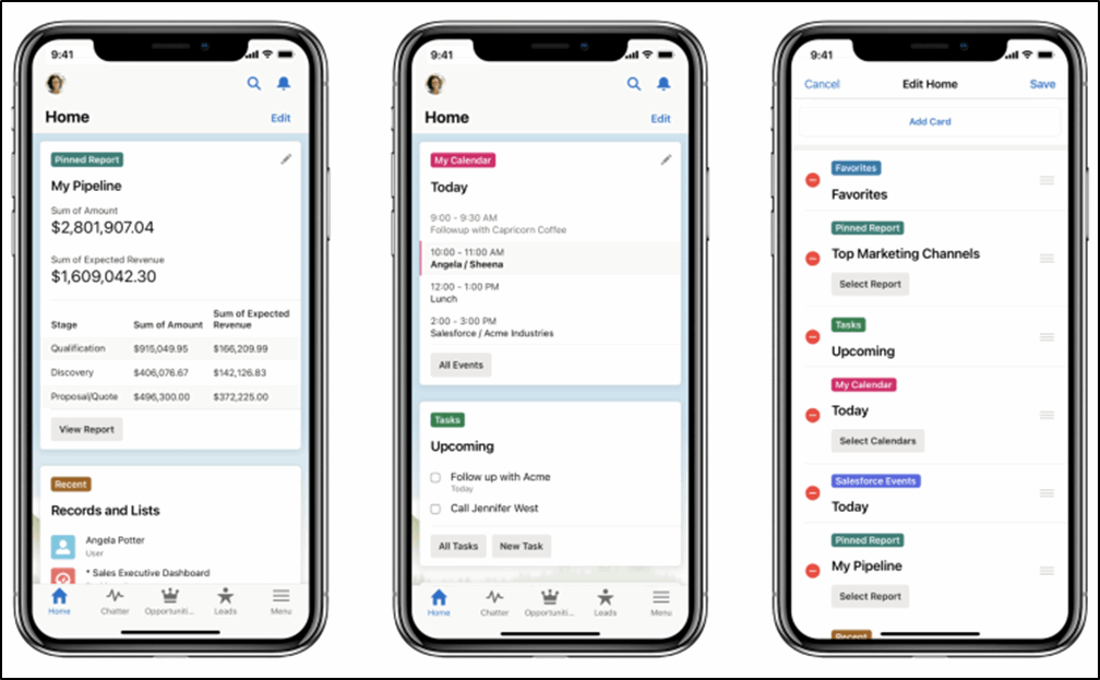 The new Mobile Home feature is now available for both Android and iOS users. This provides Salesforce Mobile users with a new home page with the ability to customize the “cards” that are displayed.