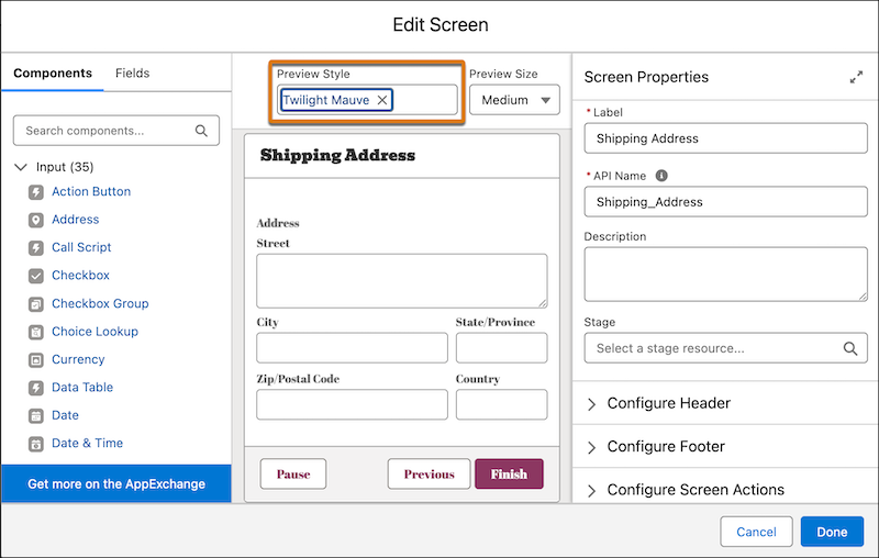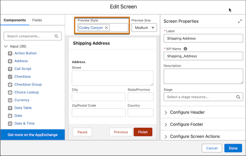 You can now see how your screen flow looks with Lightning or Experience Cloud site branding. Using the Preview Style feature ensures your flows look and feel the same as your apps and other pages, regardless of the environment they are used in.